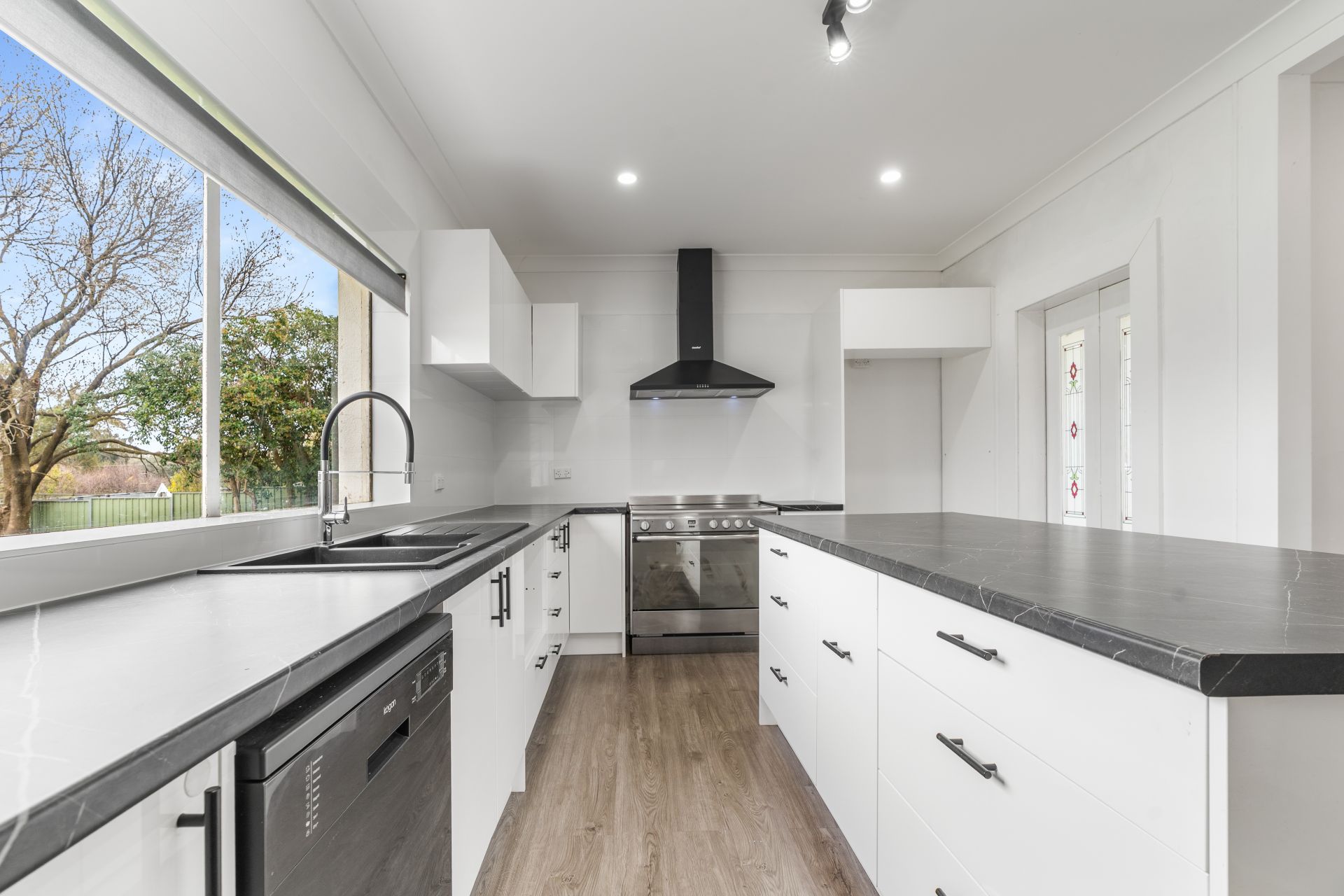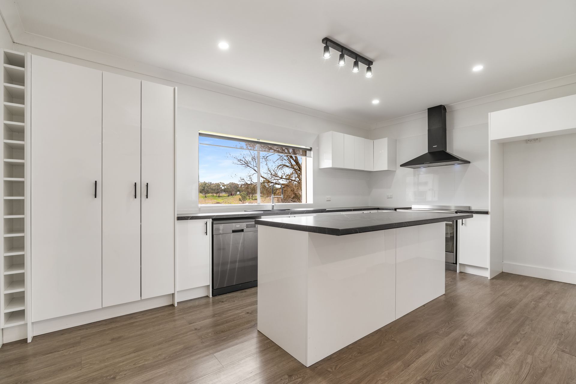 Constructed from solid double brick and besser block, the home showcases soaring pressed-metal ceilings, multiple fireplaces, and a floor plan that flows across three bedrooms, two living spaces, and a generous kitchen-meals area. The kitchen has been thoughtfully renovated with a large island bench, 900mm stove, dishwasher, and a cosy new wood fire, perfect for those cooler country evenings. The updated bathroom offers a spa bath and large shower.