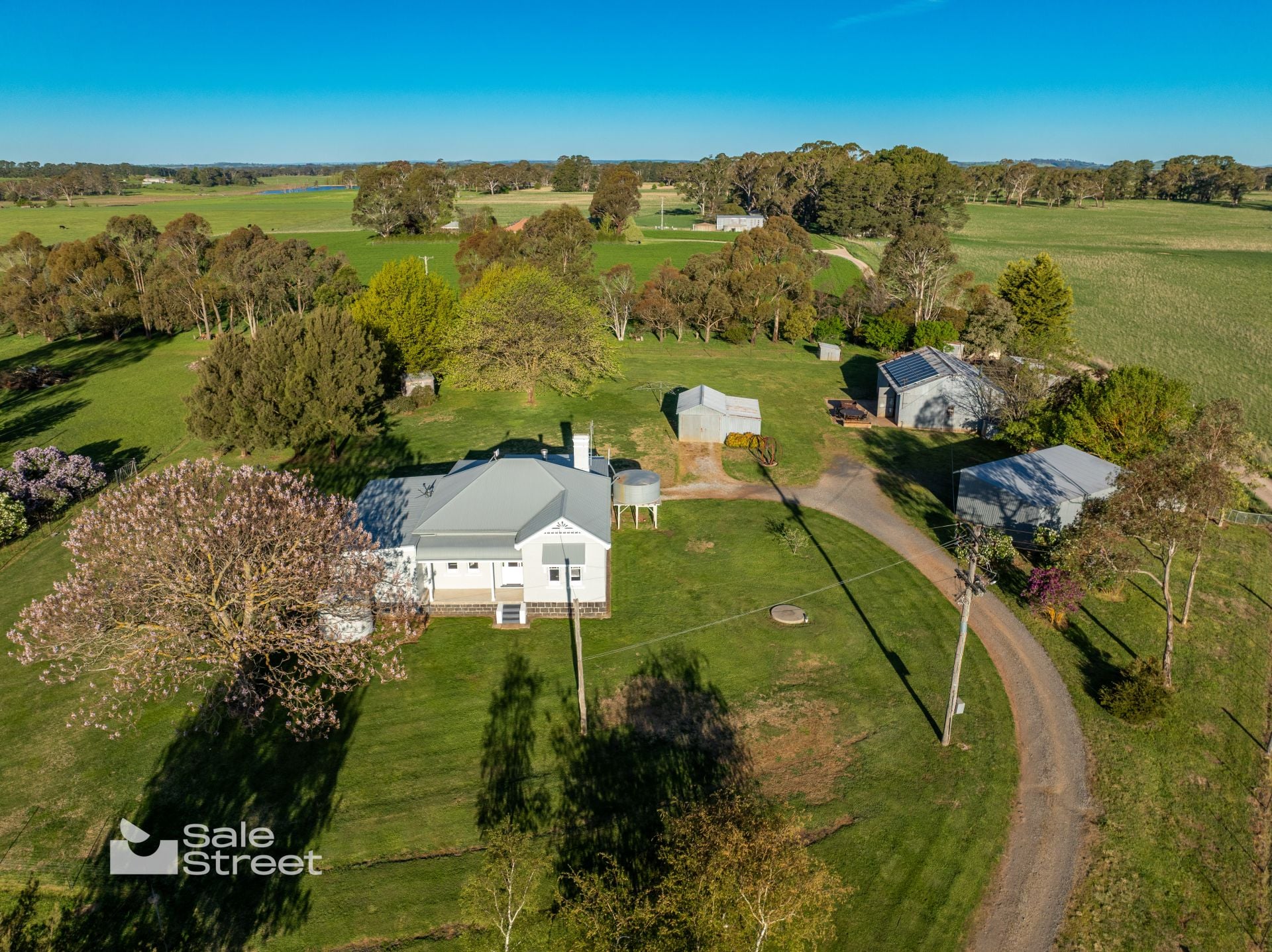 Practical comforts include a 5kW solar system, excellent water infrastructure with bore and rainwater storage, and the convenience of a school bus stopping at the front gate.