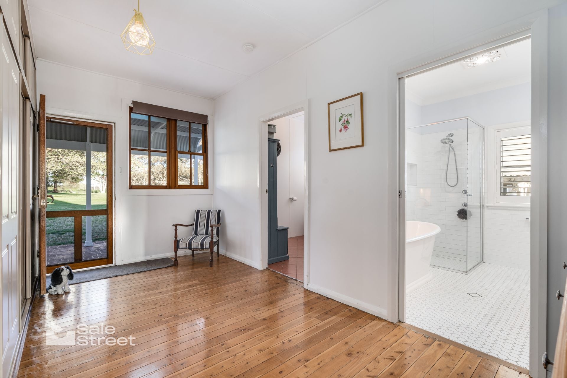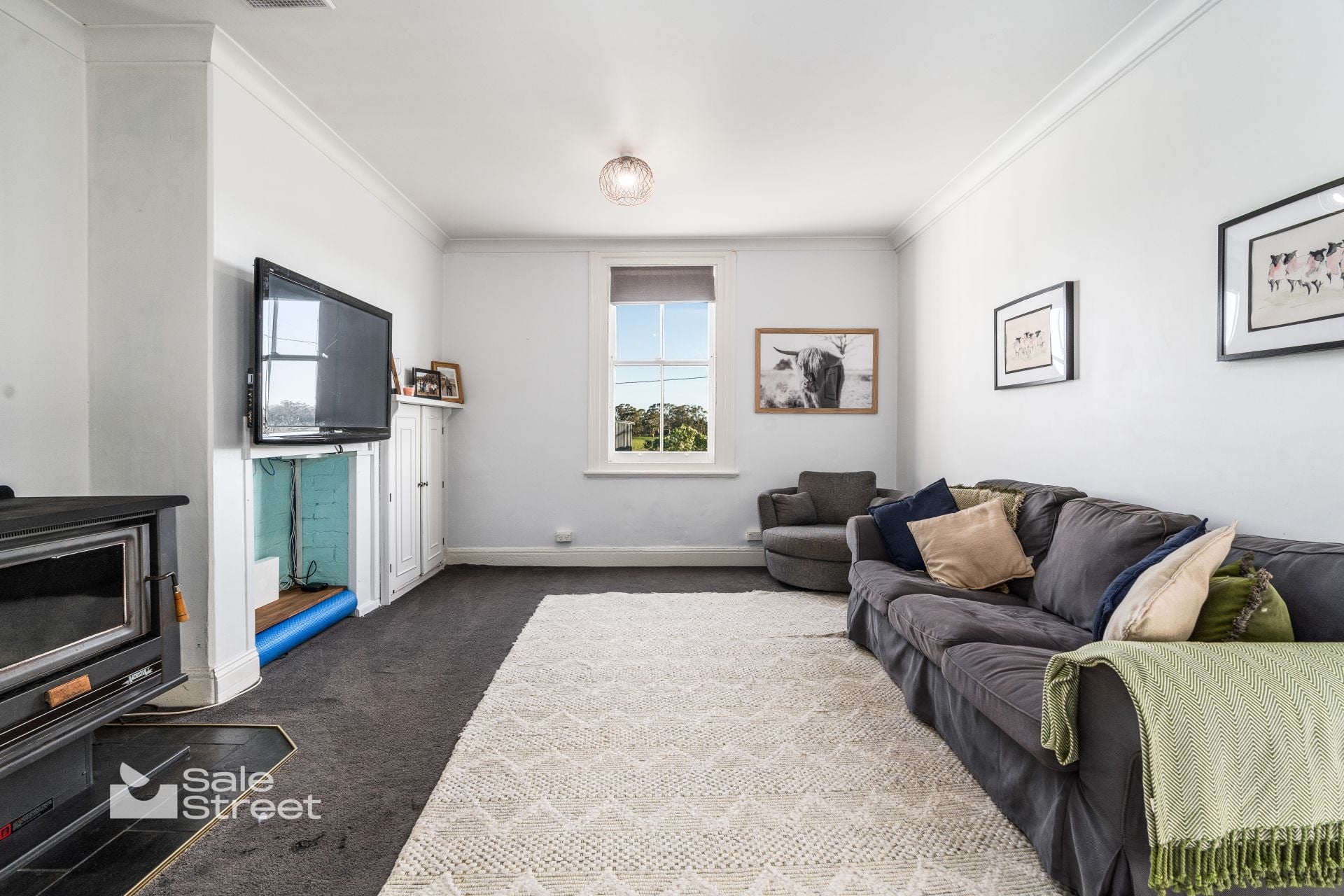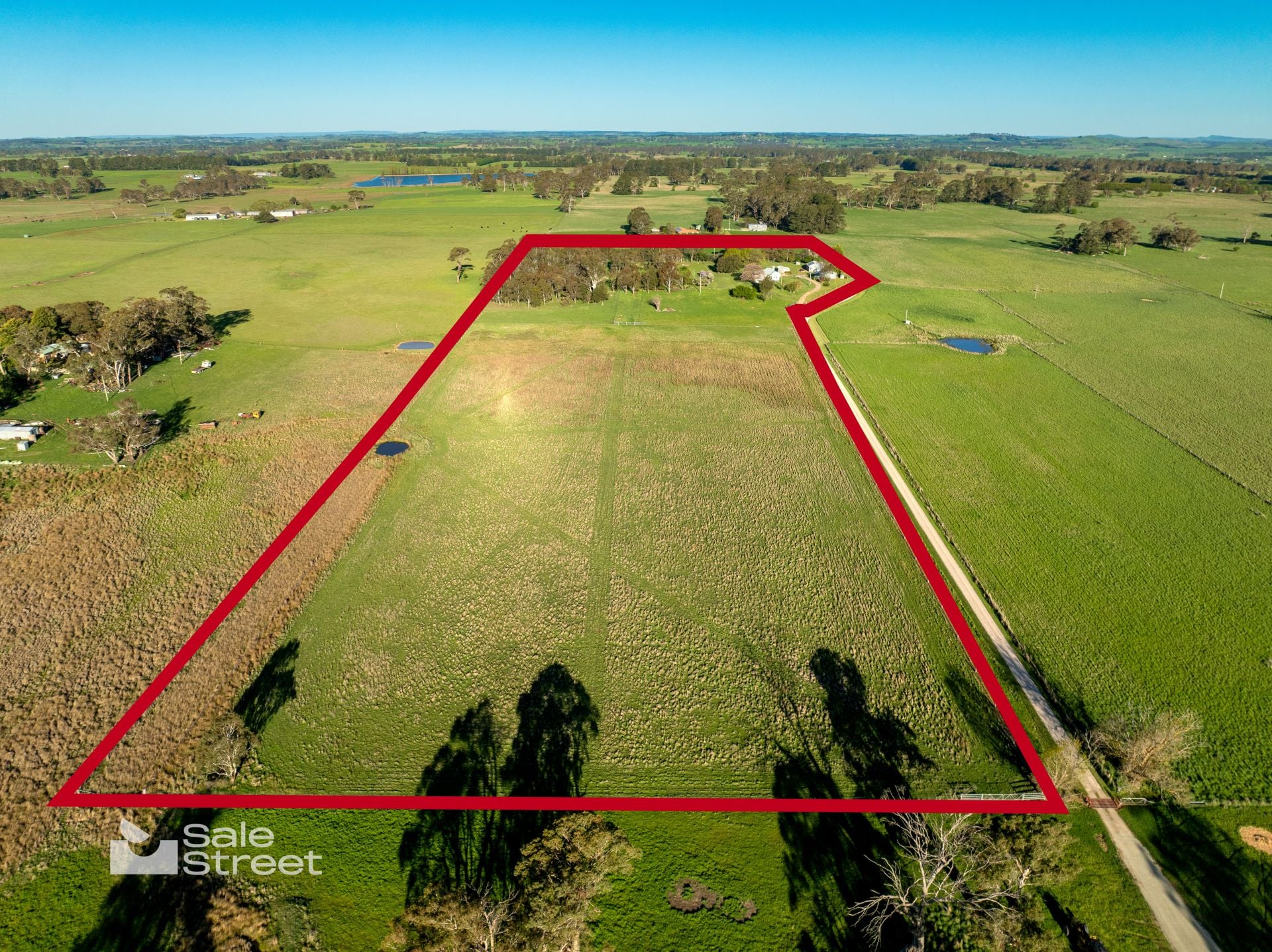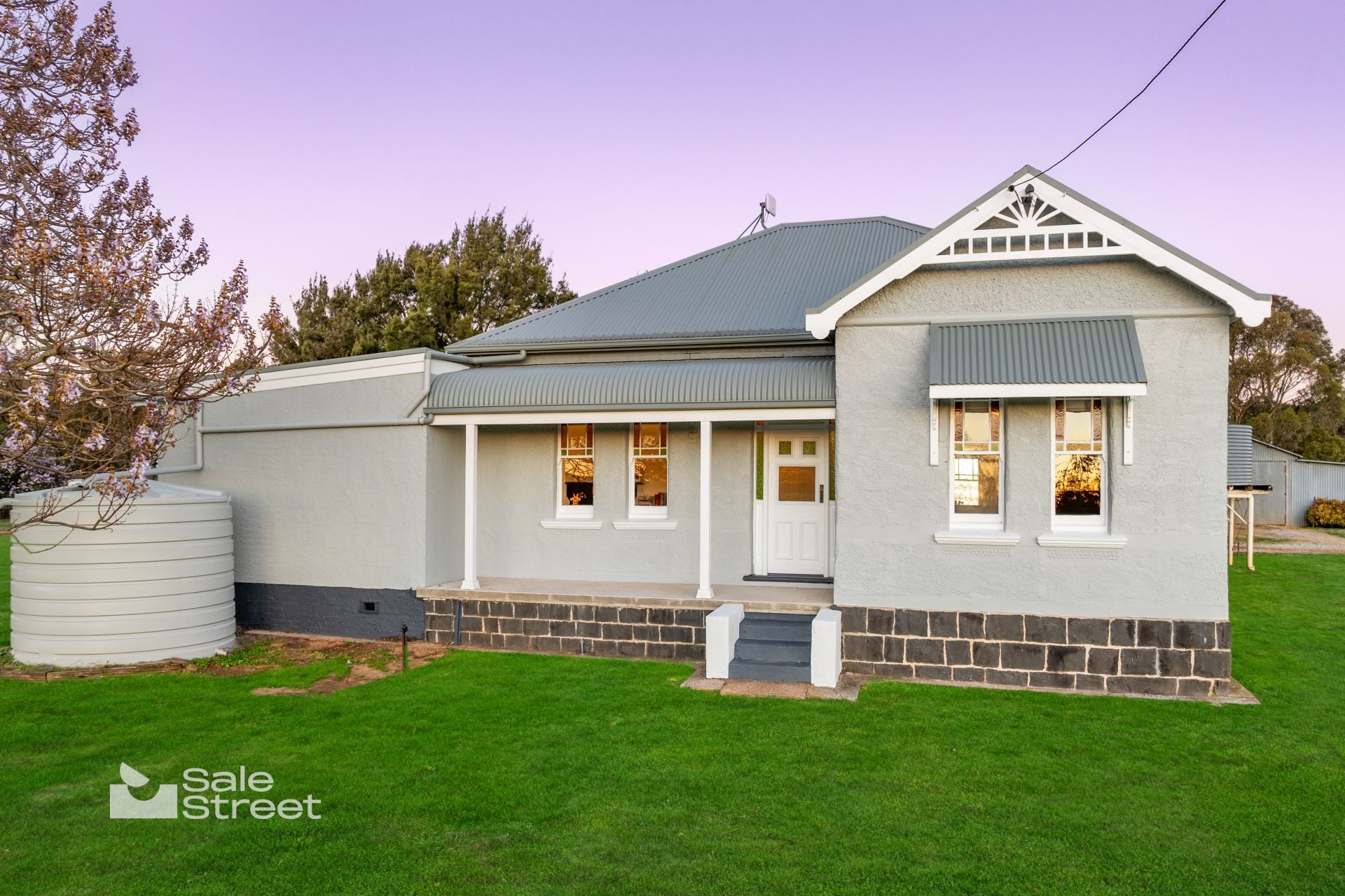 A classic bullnose verandah wraps the front of the home, perfectly positioned for morning coffee or sunset drinks as the light washes across the paddocks. Approached via a picturesque driveway, the home sits proudly on an elevated, level house yard — a rare, highly usable setting ideal for children, gardens or future expansion as your family evolves.