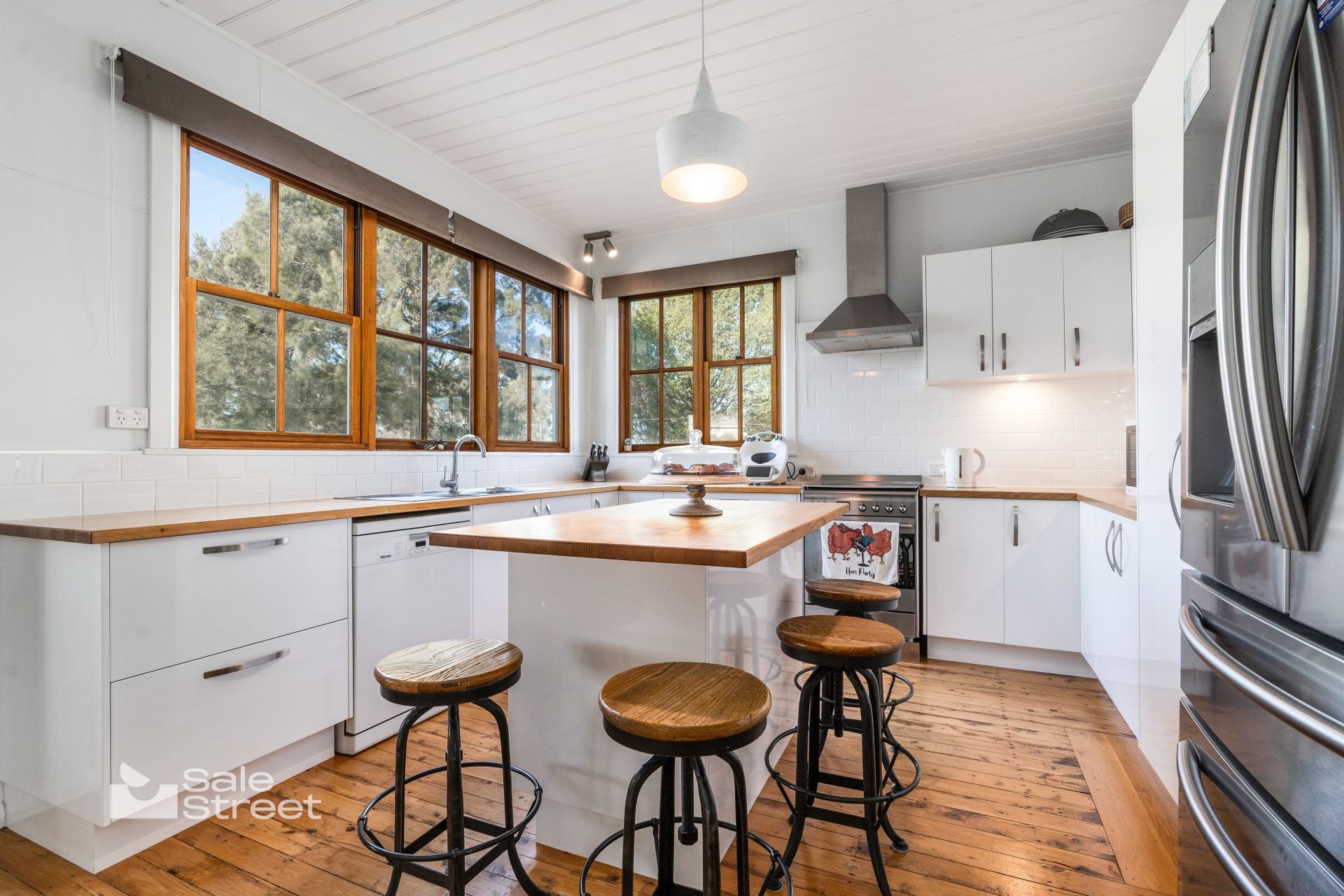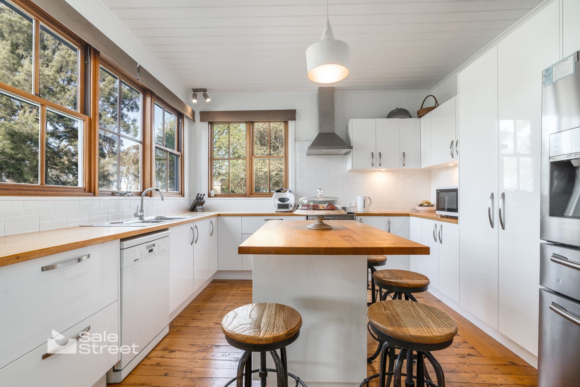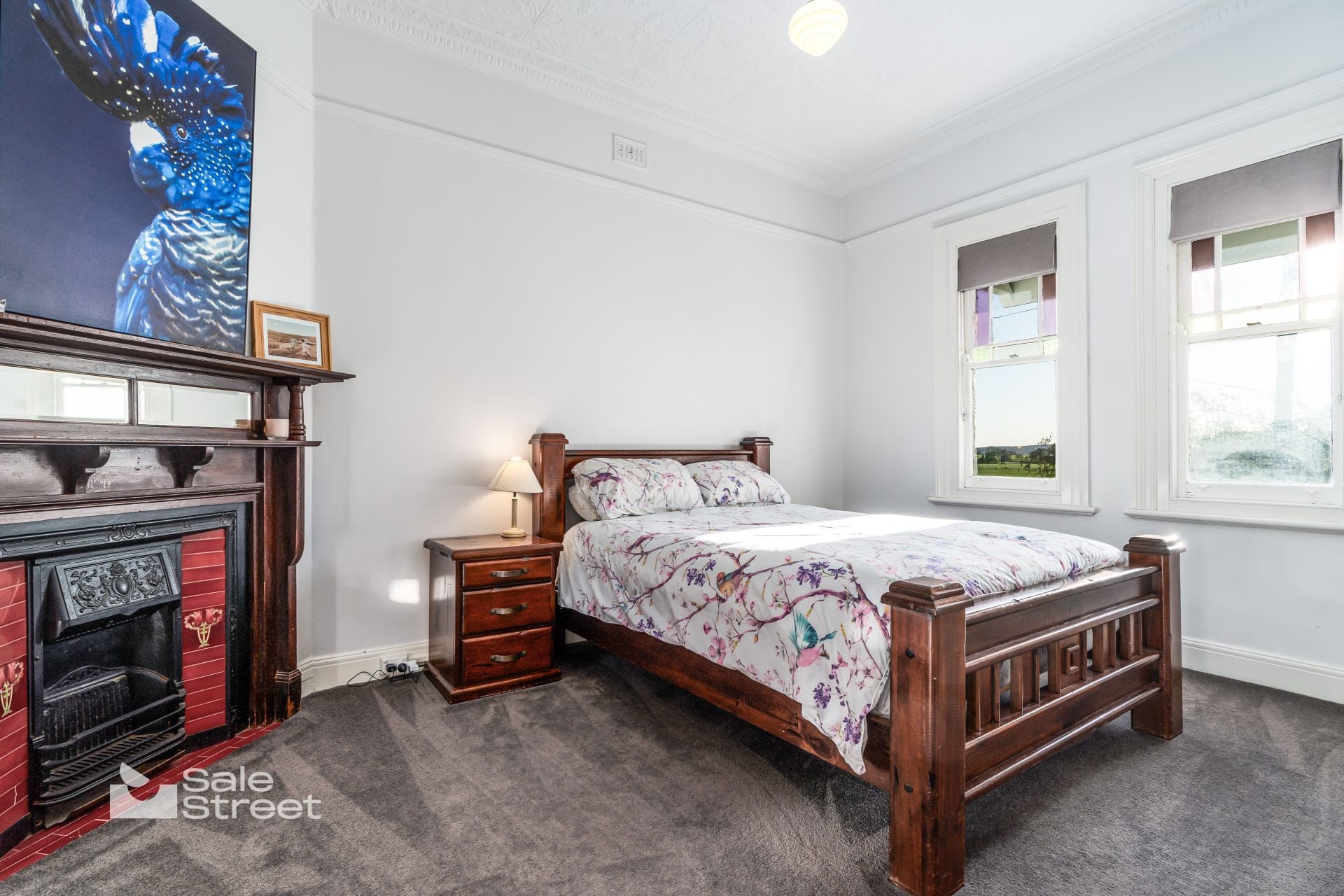 The circa-1935 double-brick farmhouse, resting on bluestone foundations, has been thoughtfully renewed to respect its history while embracing contemporary living. Original pressed-metal ceilings, polished timber floors, ornate fireplaces and cedar windows speak to its past, while generous proportions, natural light and careful updates ensure it lives beautifully today.